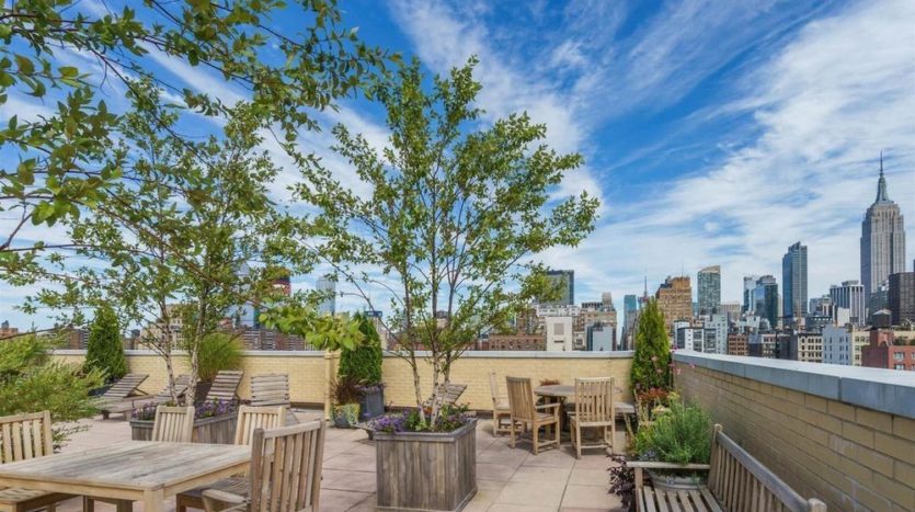 Full-service co-op amenities include a 24-hour doorman, live-in super, laundry, package room, and furnished roof deck. Moments from the High Line, Hudson River Park, dining, shopping, and transportation.